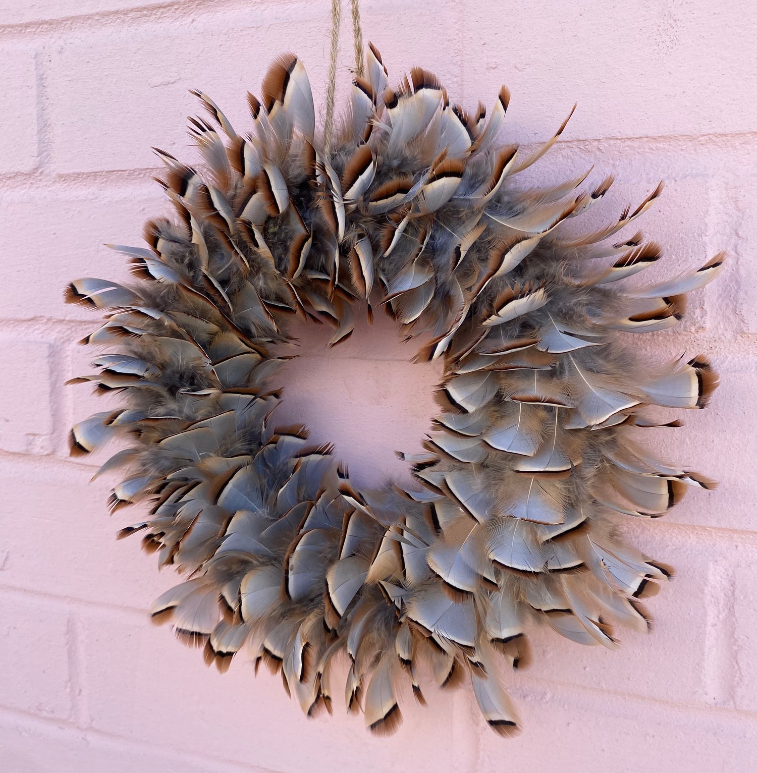 Our beautiful handmade feather wreaths are an eye-catching statement piece. It is...