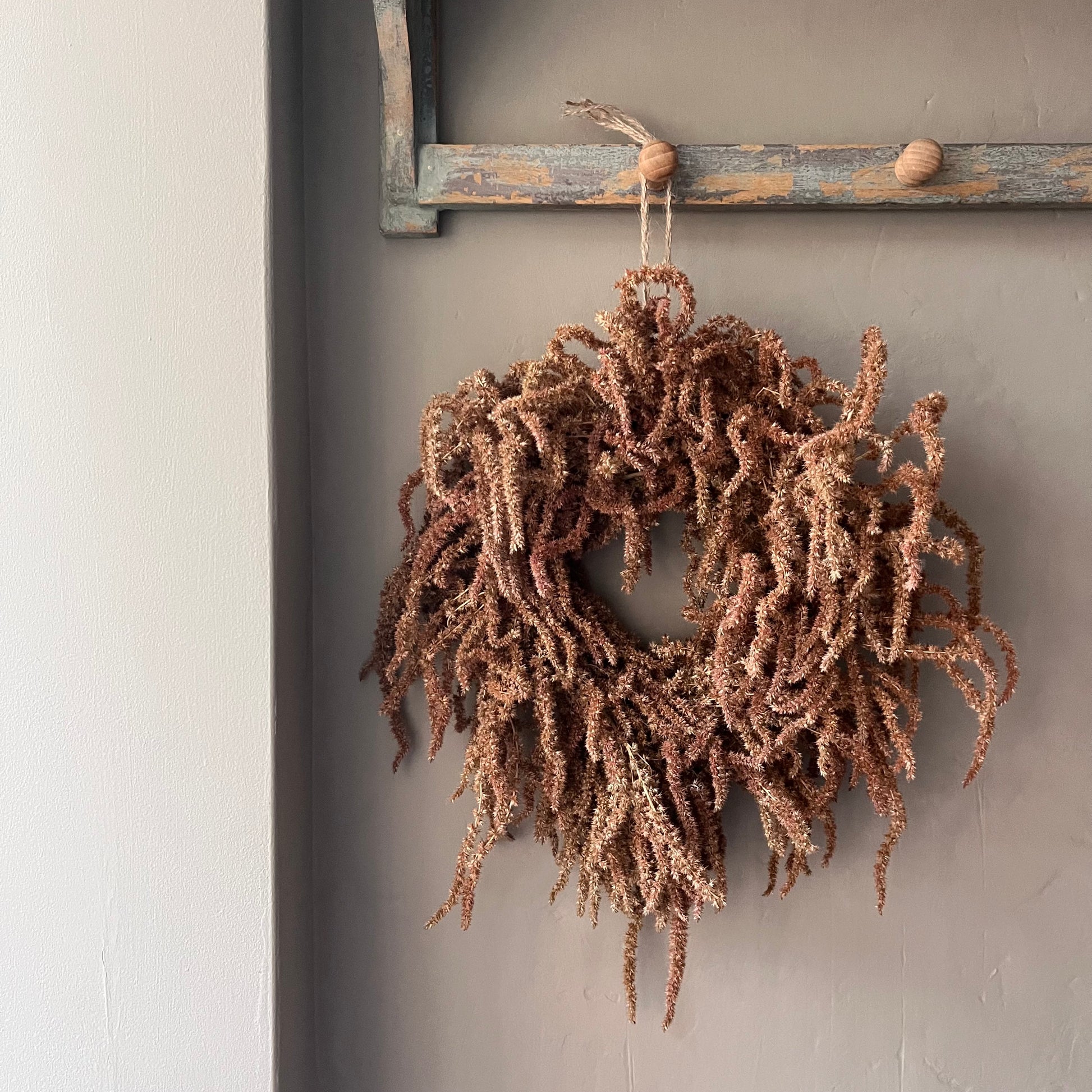-Dried flower wreaths will not last if they are left outside to battle with the elements. If they get wet or blown about, they will more than likely break, and they won’t last as long. I would recommend hanging your wreath indoors. If you wish to hang it outside, I would do so in a place that has shelter from wind and rain, but this will shorten its lifespan.