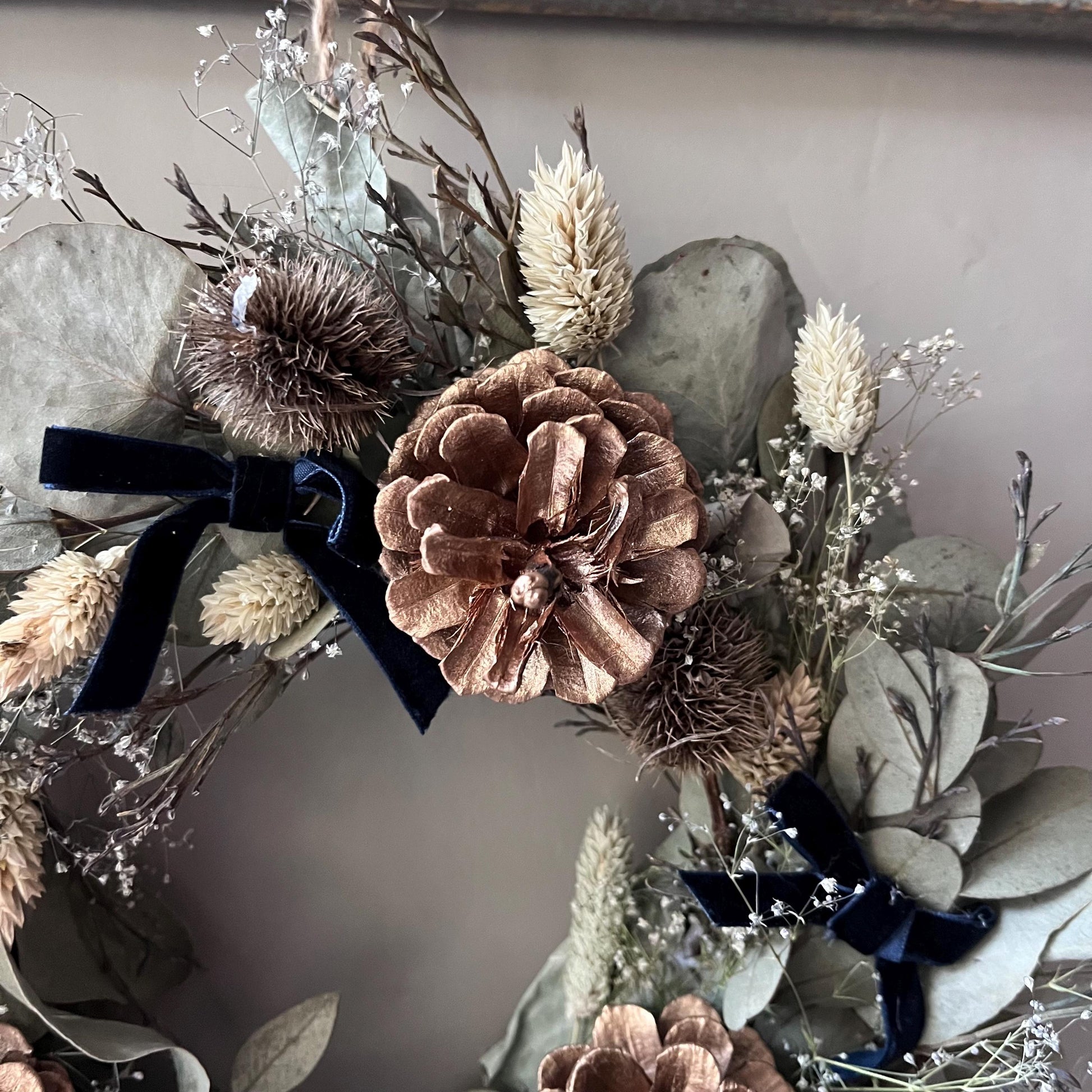 This stunning wreath is a perfect statement piece that would look beautiful in any home and for any occasion. It makes a wonderful indoor display hungover a fireplace or on a bedroom wall.