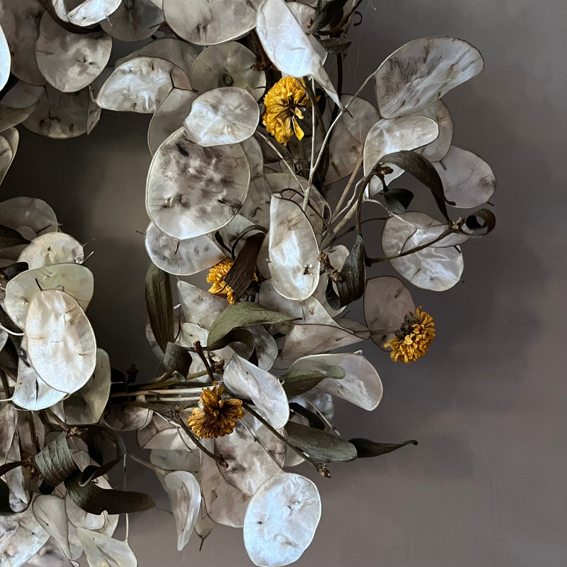 -Dried flower wreaths will not last if they are left outside to battle with the elements. If they get wet or blown about, they will more than likely break, and they won’t last as long. I would recommend hanging your wreath indoors. If you wish to hang it outside, I would do so in a place that has shelter from wind and rain, but this will shorten its lifespan.