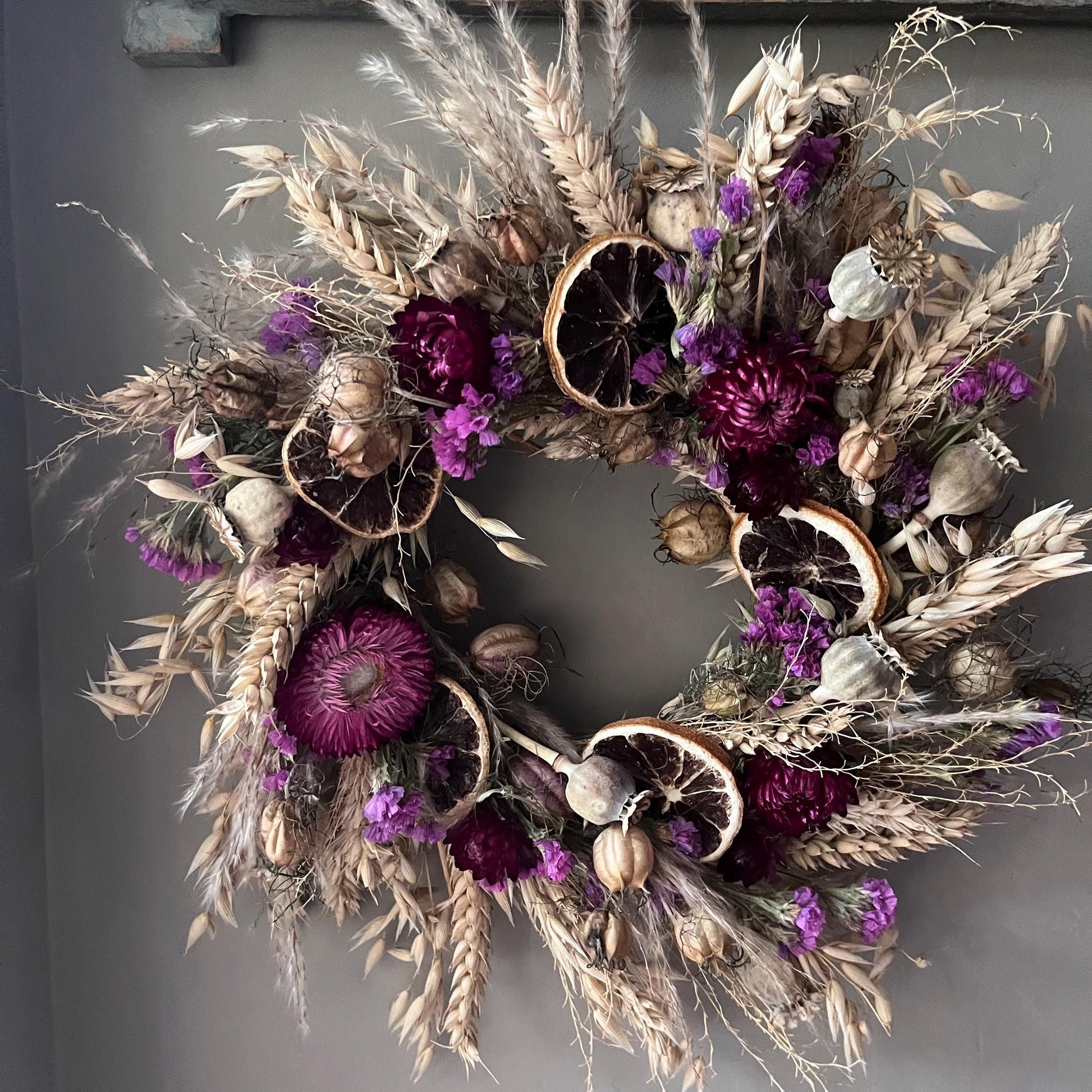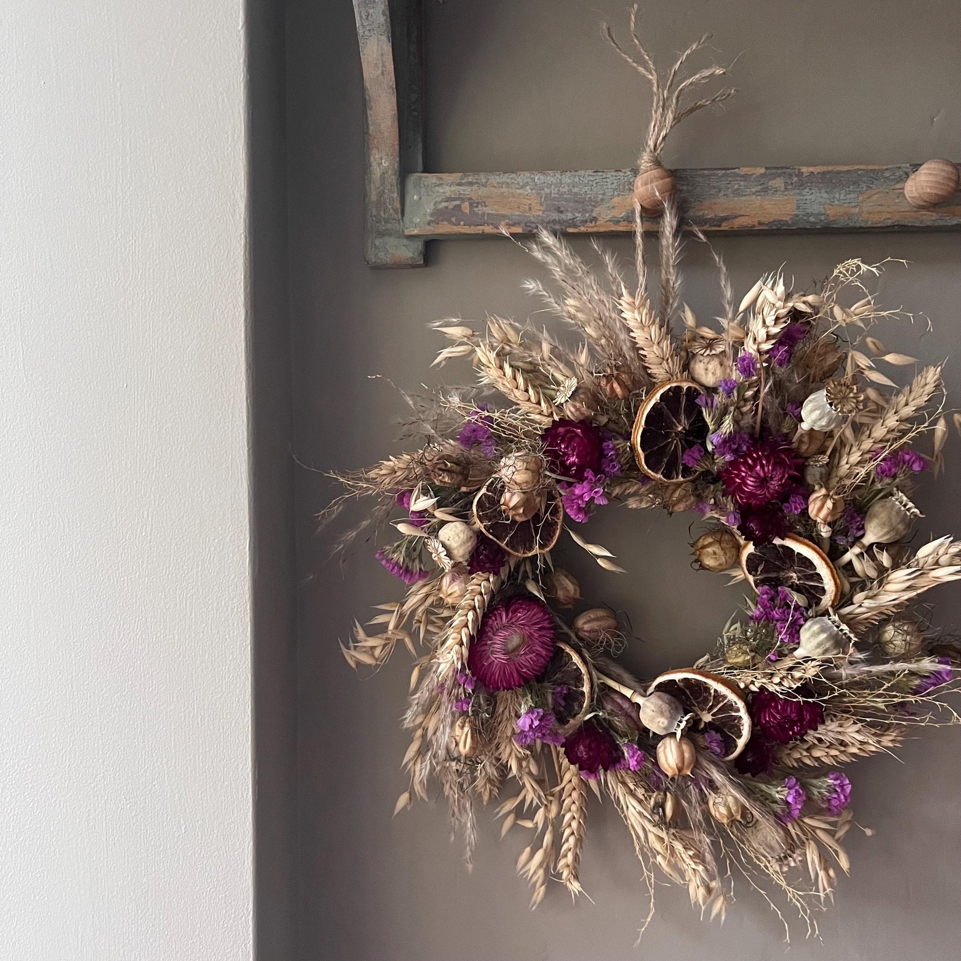 Autumn flower wreath | Dried flowers | Farmhouse home | Country living | Seasonal Front door decor | Autumnal Farmhouse wreath | 25cm