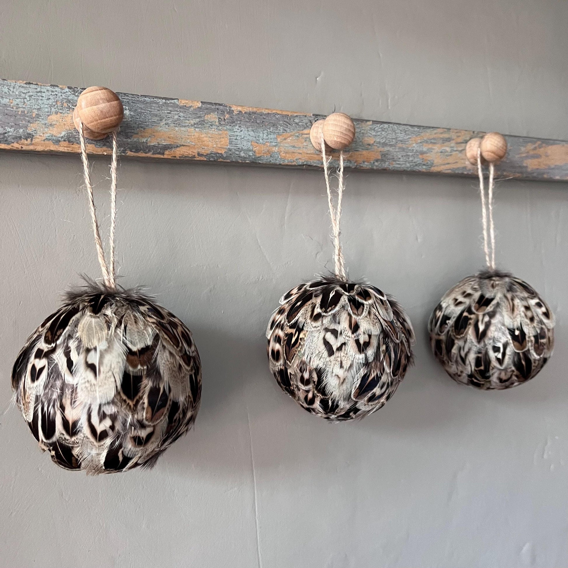 Baubles | Feather baubles | Farmhouse Christmas decorations | Country living Christmas | Feather decorations | Tree decorations
