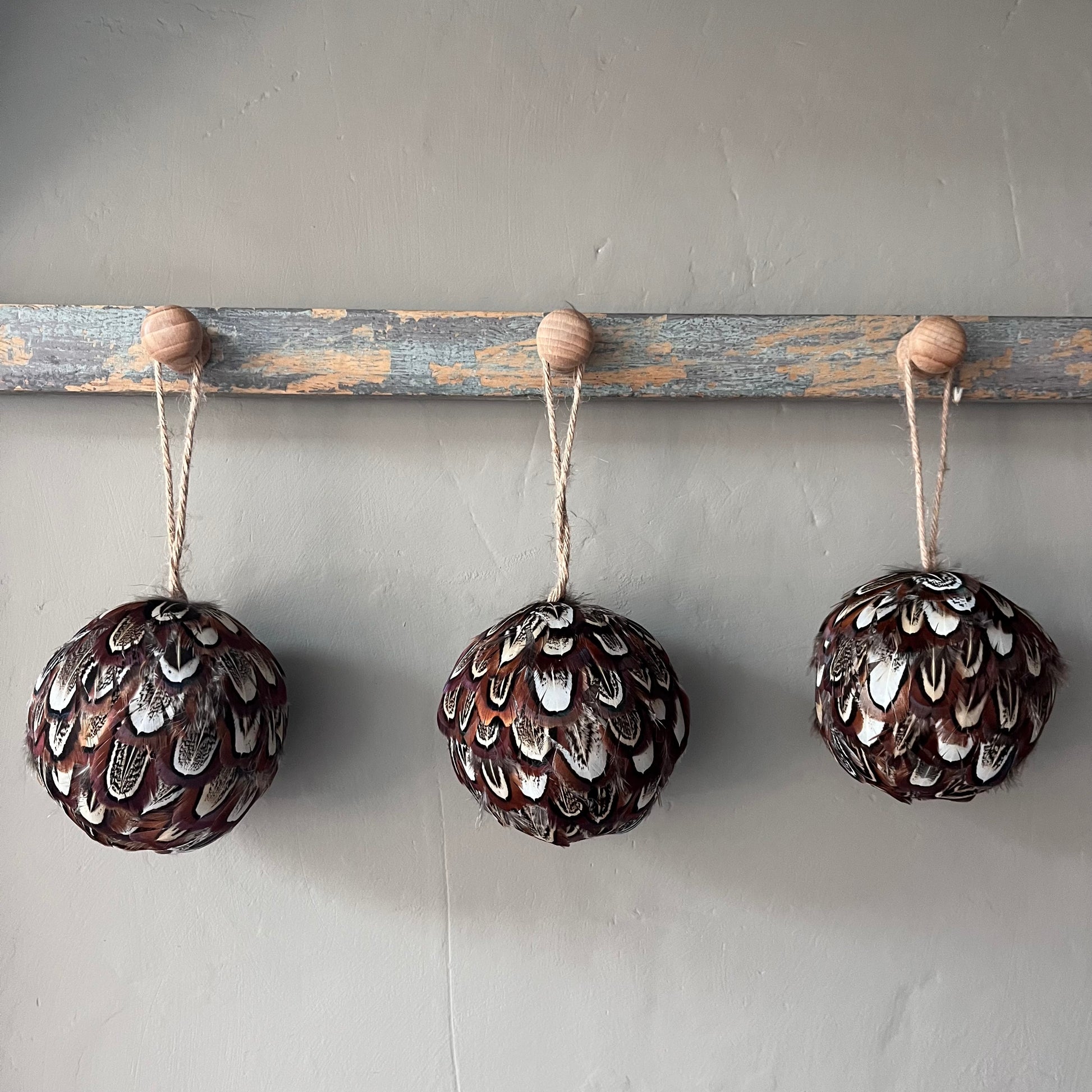 A set of 3 handcrafted real feather baubles. They look fabulous on the Christmas tree as well as all year round decorations.
