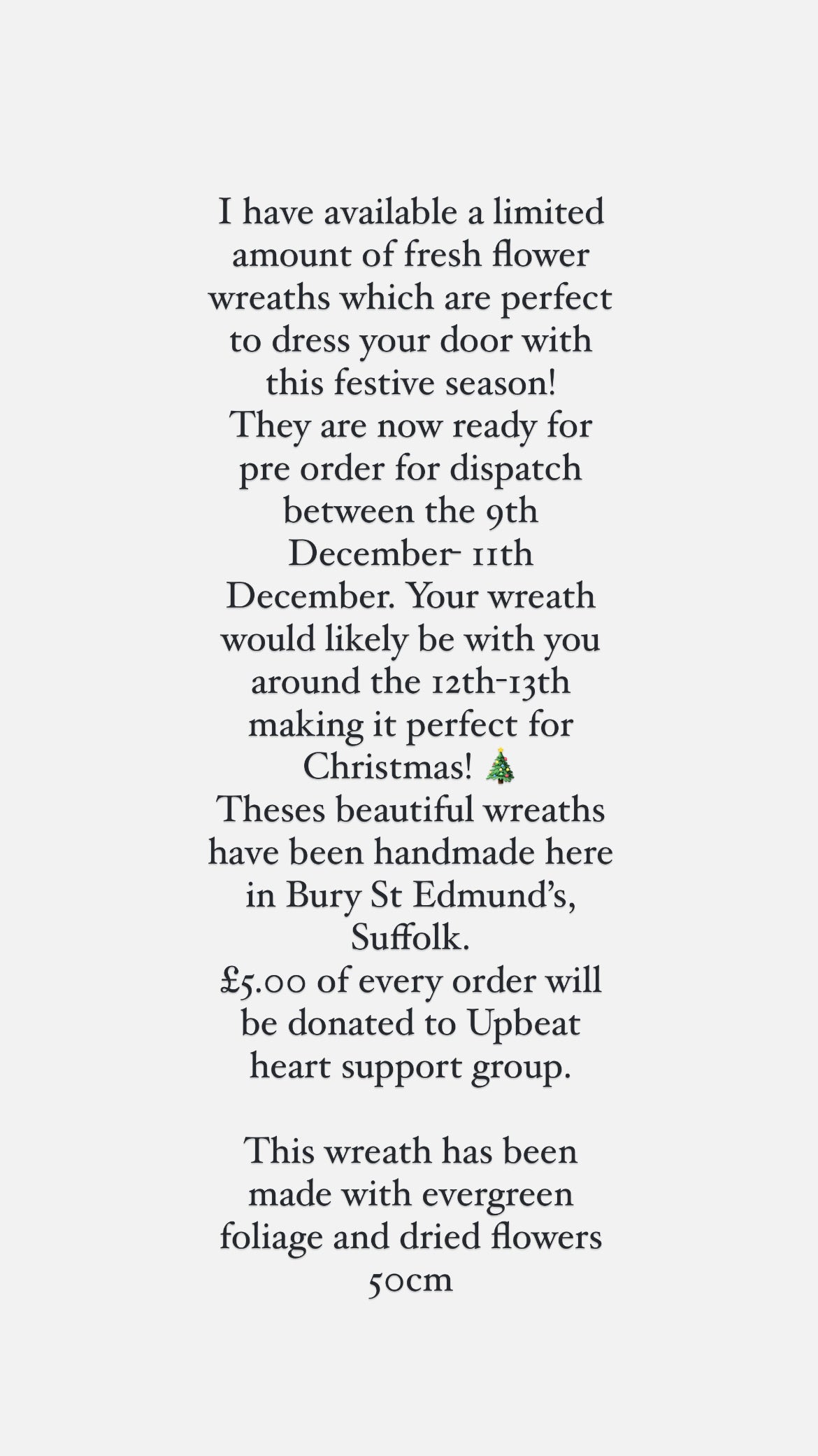 £5.00 of every wreath order will be donated to UpBeat heart support group.