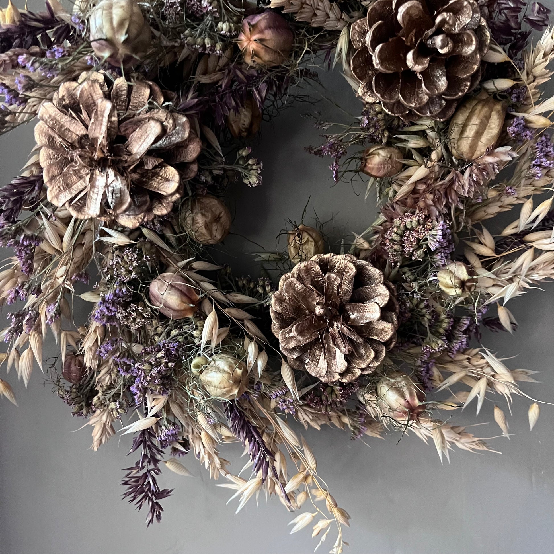 This stunning wreath is a perfect statement piece that would look beautiful in any home and for any occasion. It makes a wonderful indoor display hungover a fireplace or on a bedroom wall.