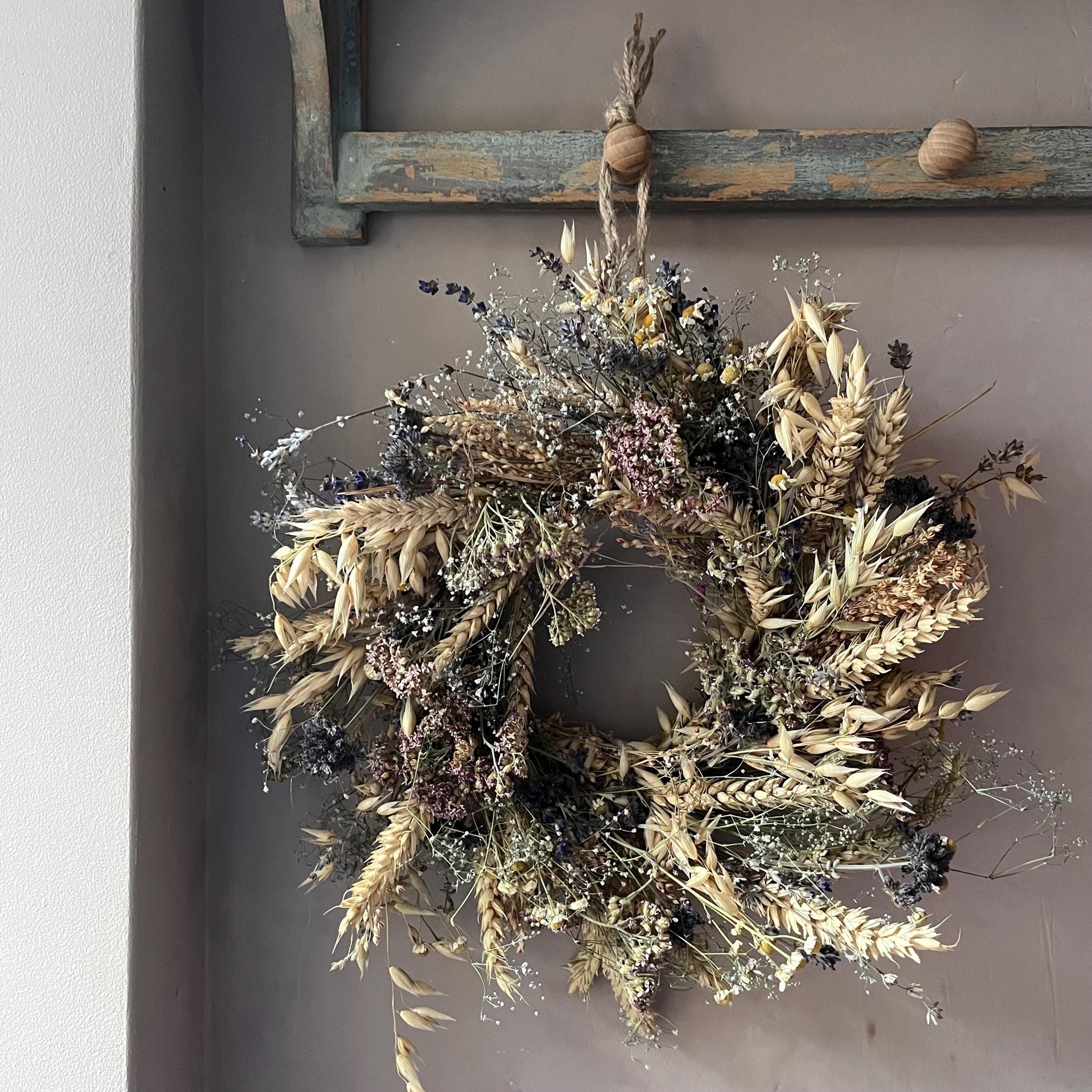 Dried flower wreath | Everlasting flower | Farmhouse style | Farmhouse home | Country living | Autumn wreath | Farmhouse wreath | 22cm