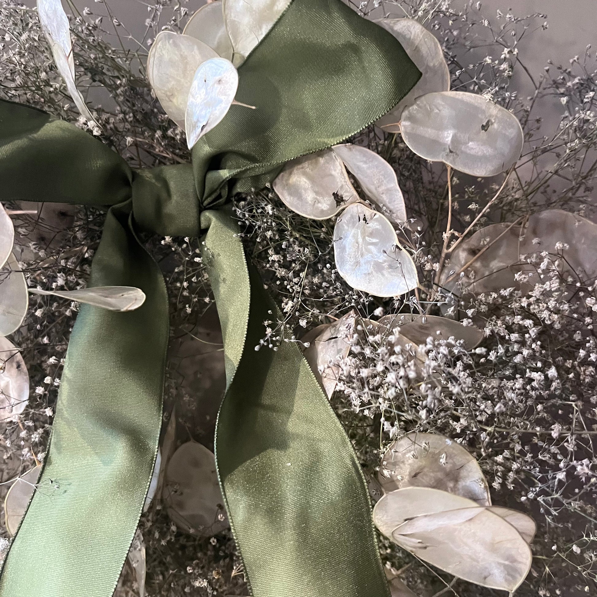 -Dried flower wreaths will not last if they are left outside to battle with the elements. If they get wet or blown about, they will more than likely break, and they won’t last as long. I would recommend hanging your wreath indoors. If you wish to hang it outside, I would do so in a place that has shelter from wind and rain, but this will shorten its lifespan.