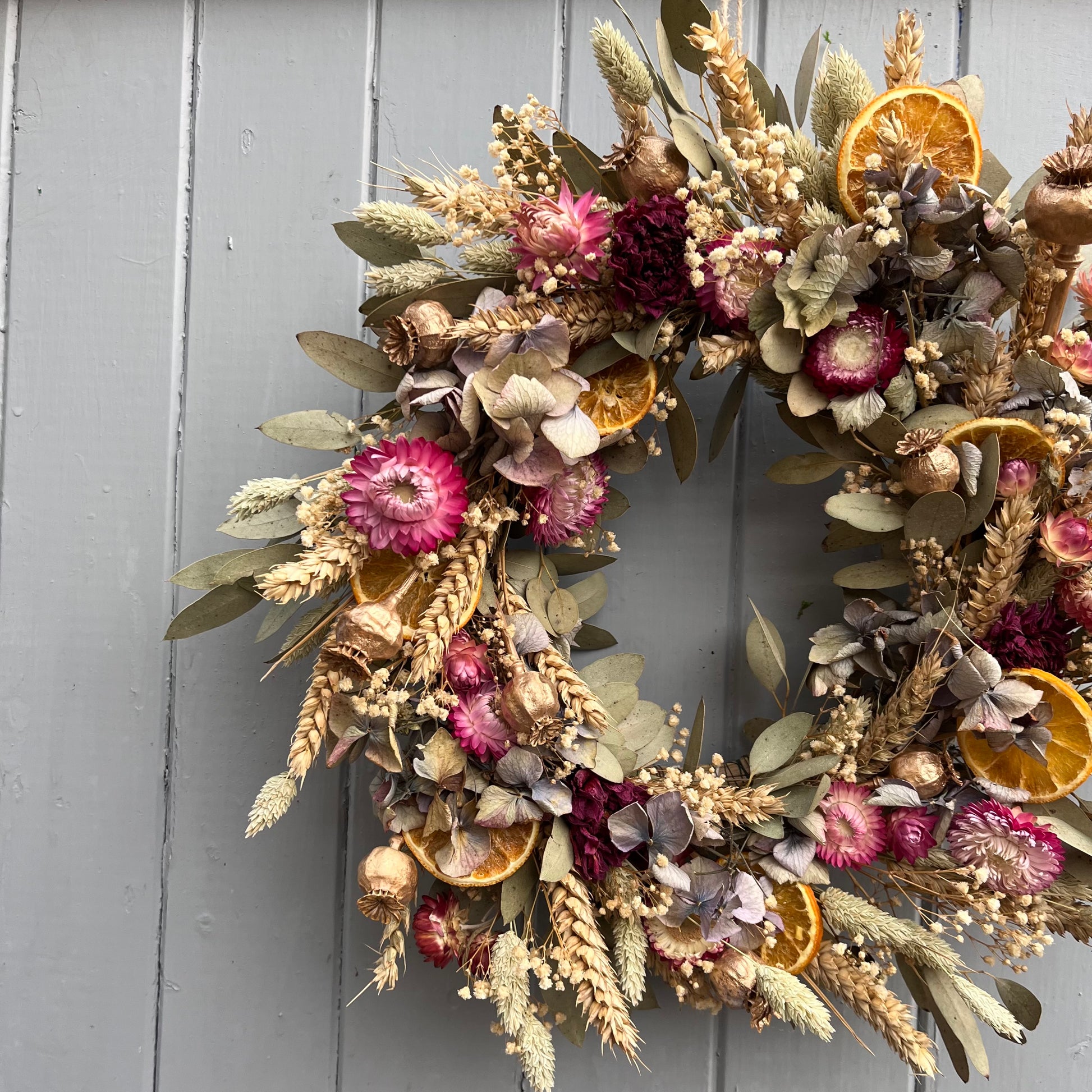 • Dried flowers aren’t always perfect- You may find some flowers or foliage have petals/ leaves missing or small damages. I promise you will hardly notice this once you have created your wreath.