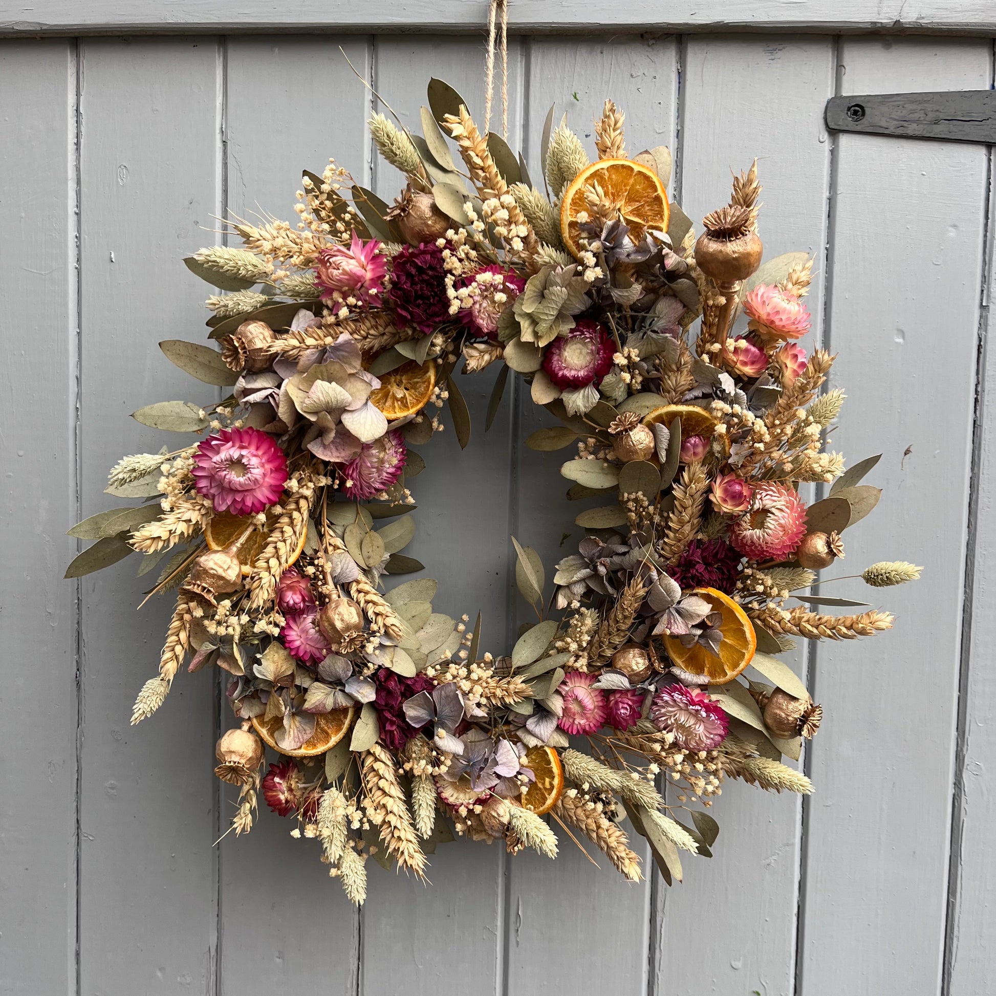 • To keep your wreath looking as colourful and fresh as possible, I would not recommend hanging your wreath in direct sunlight.