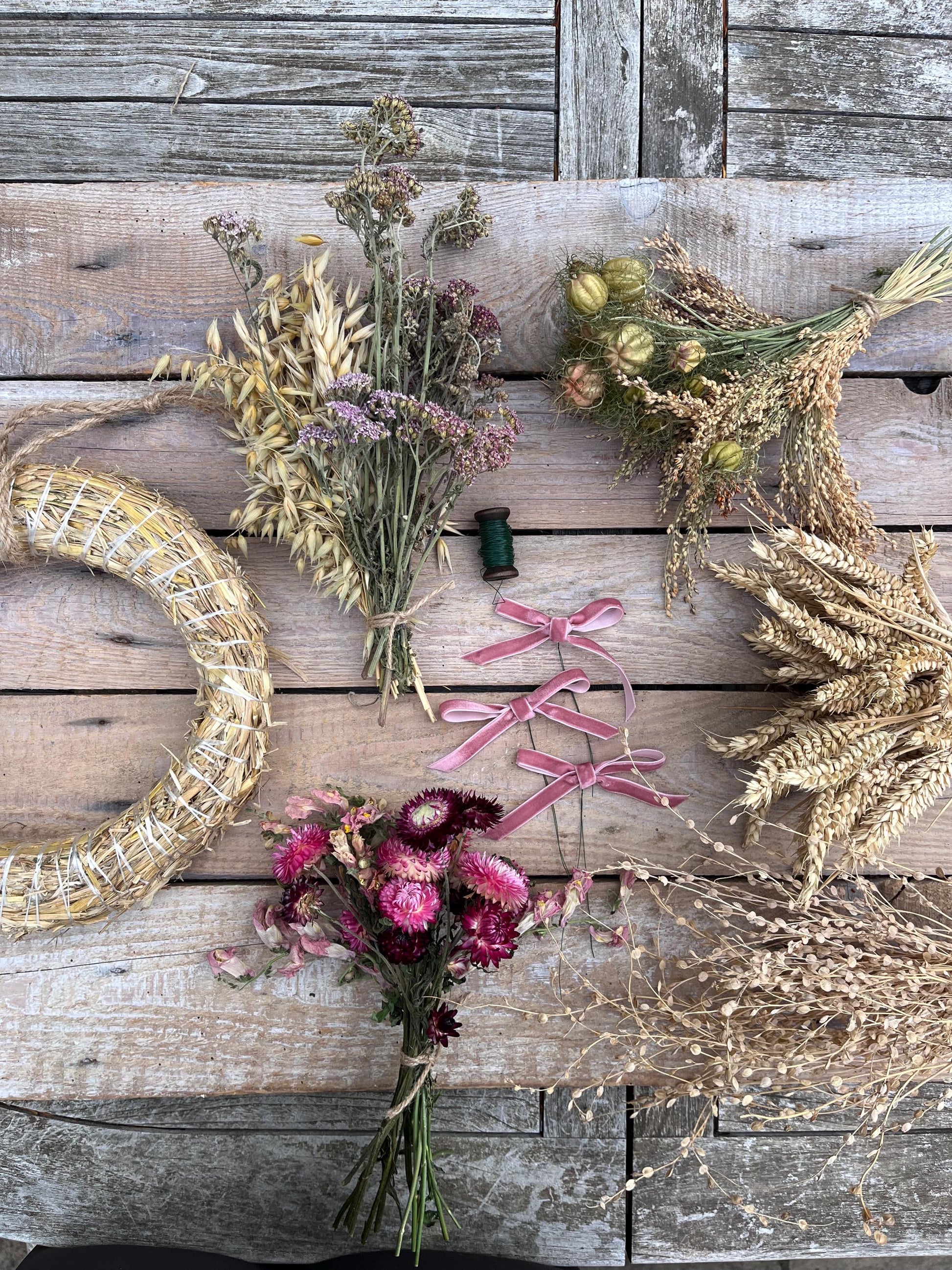 Included in this kit is everything you will need to create your own dried flower wreath.