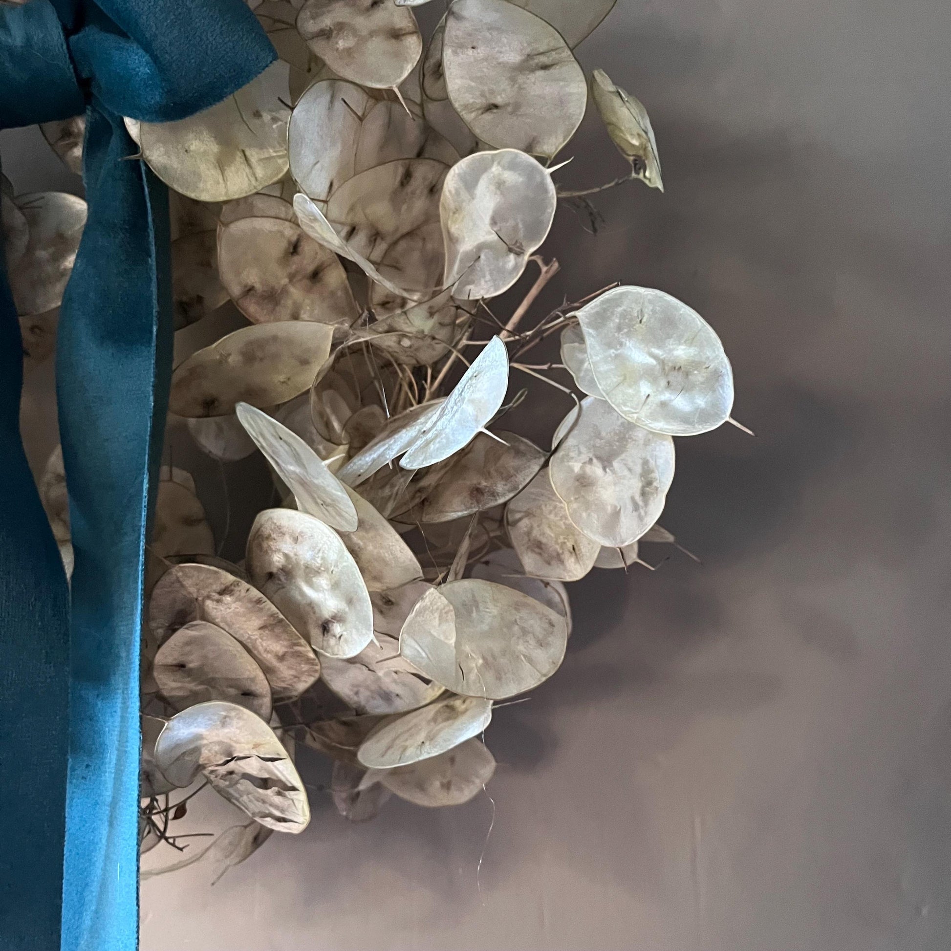 Dried Flower Wreath | Velvet Ribbon, Winter Home Decor (25cm)