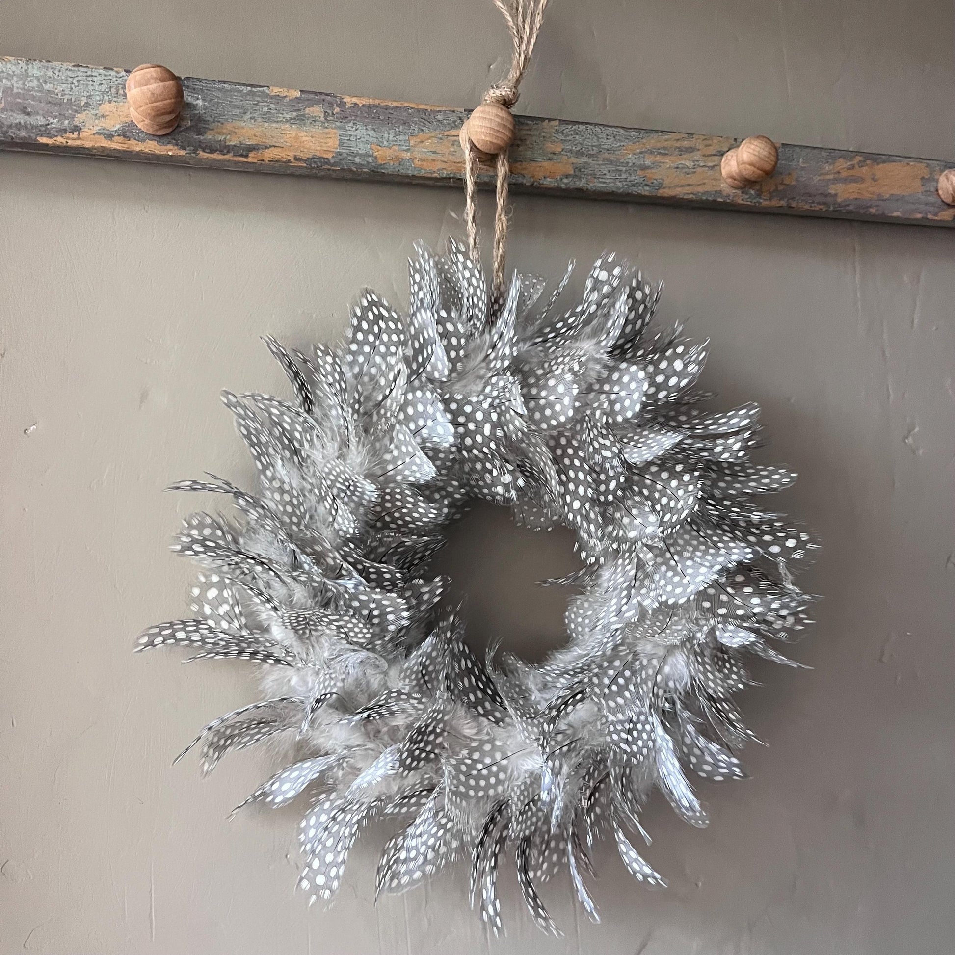 Handcrafted Guinea Fowl Feather Wreath - Farmhouse Decor (20-25cm)