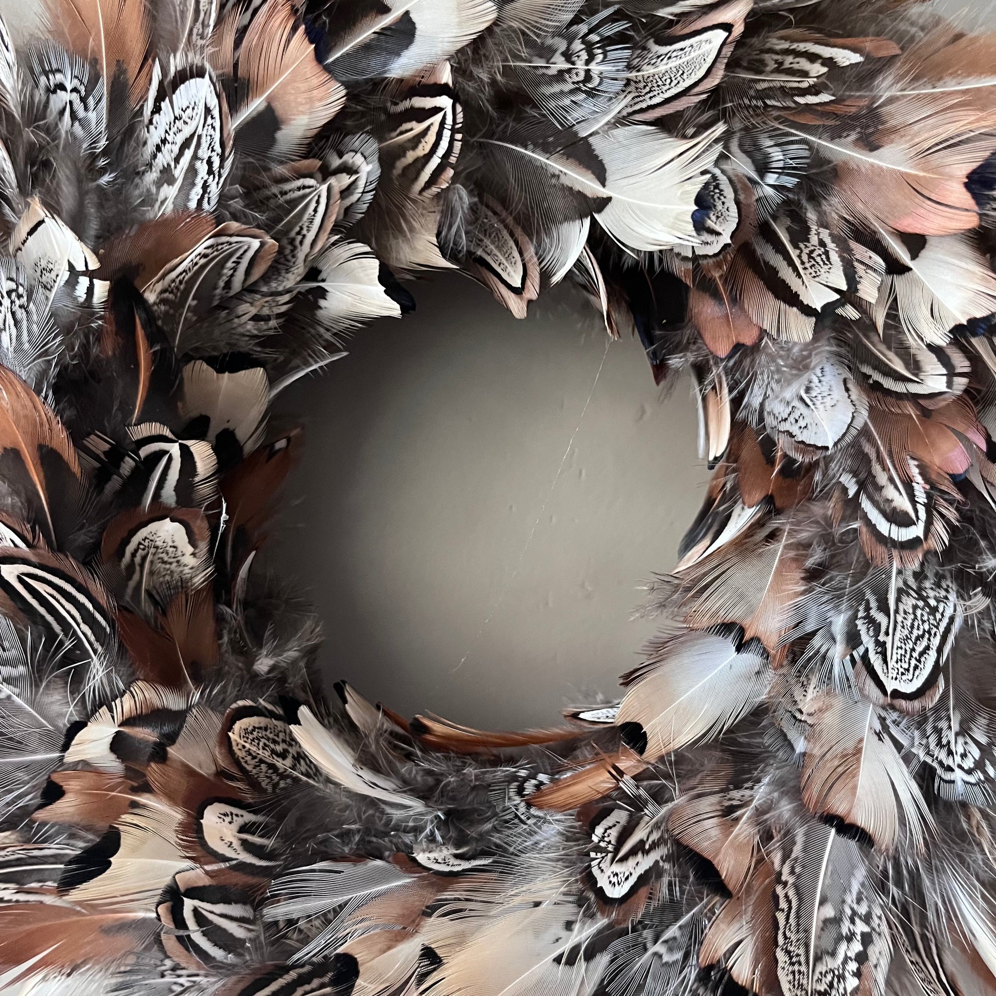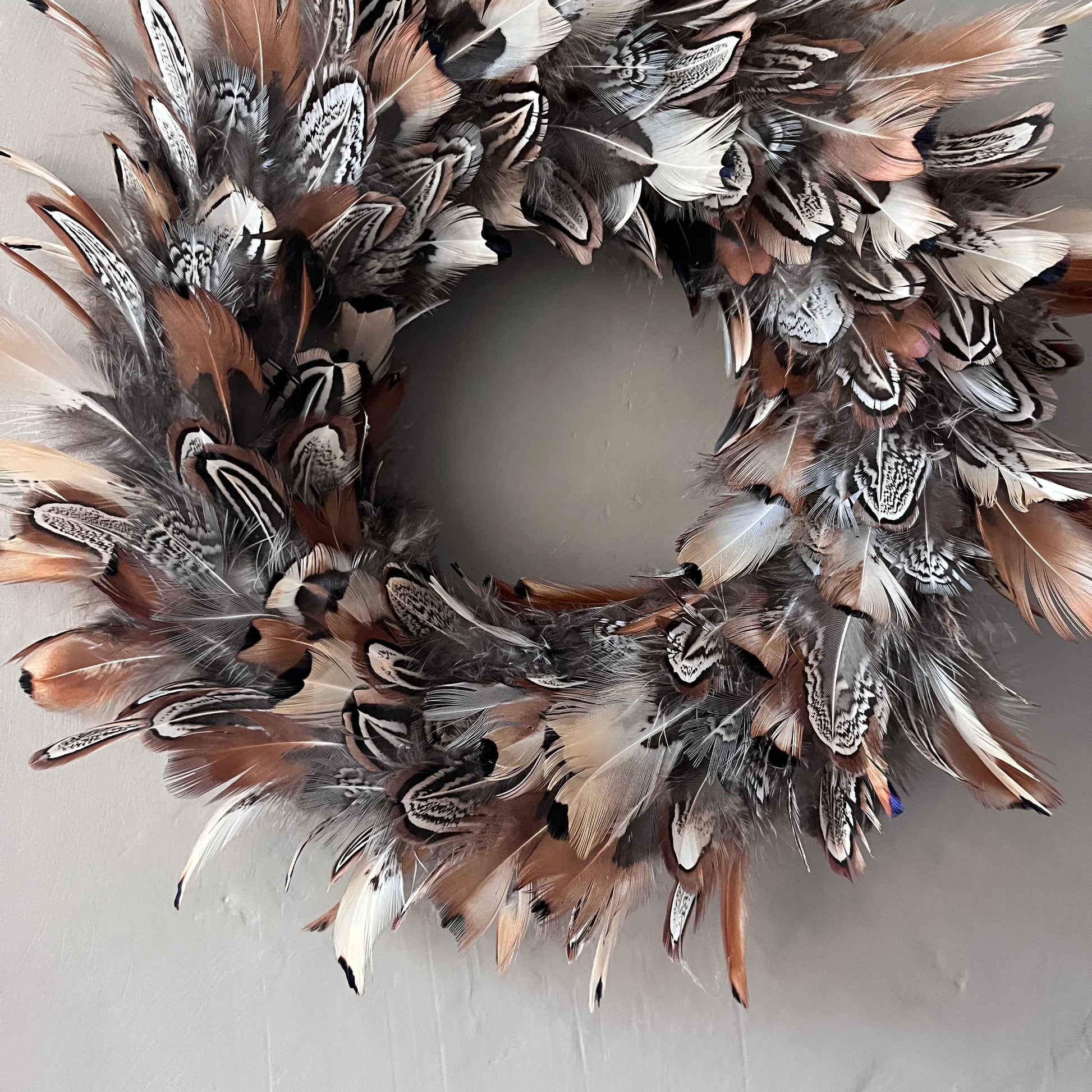Handcrafted Mixed Pheasant Feather Wreath - Farmhouse Decor (20-25cm)
